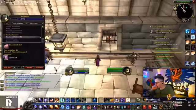 02:52:24Der Streamer ist mit dem Farmen von Magiestoffballen für die Handwerkskunst beschäftigt, um die Stufe 185 zu erreichen. Er ist verwirrt über die benötigten Mengen an Materialien wie Magiestoff und Seidenstoff, diskutiert Kosten und strategische Verkäufe von Gegenständen wie der Purpurroten Seidenweste. Dabei tauscht er sich mit anderen Spielern aus, etwa über fehlende Unterstützung bei der Herstellung und Pläne, Materialien von Freunden wie Maxi zu erhalten, um die Vorbereitungen für das Level 50 voranzutreiben.