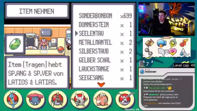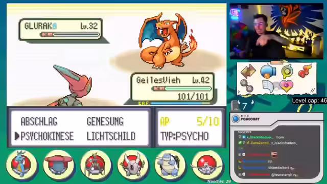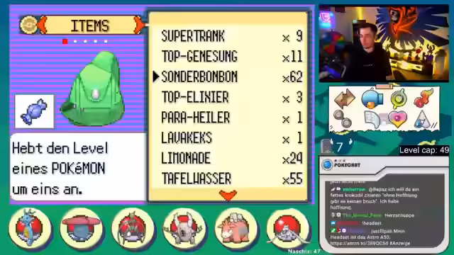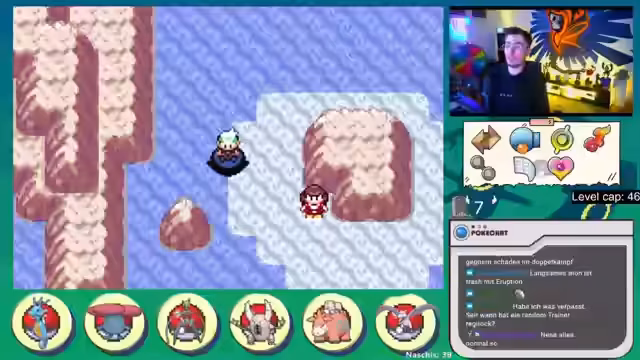 01:44:24Zu Beginn des Streams gibt es Diskussionen über Social Media und zukünftige Spielpläne. Der Fokus liegt auf einer Nuzlocke in der Smaragd-Version, bei der ein starker Glurak gegen einen übermächtigen Gegner verloren geht. Dies beeinträchtigt die Teamstrategie erheblich, da der Glurak der wichtigste Sweeper war. Der Streamer navigiert durch das Aqua-Versteck, kämpft gegen verschiedene Pokémon, insbesondere Geister wie Banette, und ist frustriert über die hohe Stufe und den Schaden von Level-5-Gegnern wie Marschbombe. Er macht sich Sorgen über die anstehenden schwierigen Kämpfe, da sein Team schwach ist und er die Versteck-Encounters nicht eintragen kann.