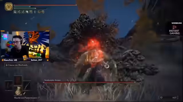 00:18:06Nach dem Start in Elden Ring wird die anfängliche Schwierigkeit deutlich. Der Streamer ist eingerostet und kämpft mit den Grundlagen, was zu unsicheren Entscheidungen führt. Beinauch schon beim ersten Bosskampf gegen die Feuertaufe, kommt es zu gefährlichen Momenten, jedoch noch ohne den ersten Tod. Die Route wird nun durch Weeping Peninsula geplant, um wichtige Materialien wie Schmiedesteine und die opalene Blasenträne zu sammeln, bevor es zum ersten Baumwächter geht.