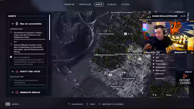 02:52:21Der Spieler leidet unter einem Mangel an wichtigen Ressourcen, insbesondere an Spielchargern, und ist 'full pleite'. Er sucht verzweifelt nach Gelsäcken zum Heilen und Containerschlüsseln für den Raumhafen, um an wertvollen Loot zu gelangen. Die Suche nach diesen Gegenständen ist zeitkritisch, da er nur wenige Minuten Zeit hat, um einen Containerhof zu erreichen, wo er jedoch mit der Anwesenheit anderer Spieler rechnet. Die Soundkulisse des Spiels, insbesondere die 'Soundpolisse', wird gelobt und trägt zur Immersion bei. Trotz der Schwierigkeiten und der ständigen Bedrohung durch andere Spieler bleibt die Motivation, wertvolle Gegenstände zu finden und zu sichern, bestehen, auch wenn dies oft mit hohem Risiko verbunden ist.