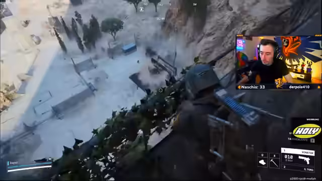 00:55:33Die Spielzeit auf 'Stella Montes' ist von einer fortwährenden, intensiven Action geprägt. Der Streamer beschreibt Firefights als 'friendly', was die hohe Konfrontationsbereitschaft der Spieler auf dieser Map widerspiegelt. Er tötet mehrere Gegner und kommentiert das looten ihrer Ausrüstung, darunter Waffen wie die Ferro und die Il Toro. Ein besonderer Fokus liegt auf einer besonders nervigen Granate. Im späteren Verlauf des Spiels tötet er zwei Spieler, die sich als 'friendly' ausgegeben haben, was zu einer Diskussion über Karma und schlechtes Gewissen führt. Er kommentiert, dass er zwar schlechtes Gewissen habe, dieses aber durch eigene negative Erfahrungen wie das Gebackstabtwerden relativiert werde.