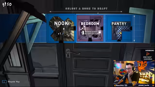 02:47:49Nachdem er sich mit Rocket League auseinandergesetzt hat, beginnt der Streamer mit einem neuen Spiel namens Blueprints. Es handelt sich um ein Rätselspiel mit Roguelike-Elementen. Schnell wird jedoch das größte Problem des Spiels deutlich: Es ist komplett auf Englisch und bietet keine deutsche Übersetzung. Für einen deutschen Streamer, der für ein breites Publikum streamt, stellt dies einen Ausschlussgrund dar, da die Rätsel durch die Sprachbarriere unüberwindbar und das Spiel somit unspielbar und unstreambar wird.