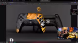 05:15:46Der Streamer präsentiert ein erstes Konzeptdesign für einen exklusiven Rocket Games Controller, der in Zusammenarbeit mit der Community entsteht. Das Design im Gelb-Orange-Ton der Marke soll in der Realität einen silbernen Schimmereffekt aufweisen. Der Streamer holt aktiv Feedback ein und diskutiert das Design, speziell den prominent platzierten Schriftzug 'Reapers'. Er äußert den Wunsch, den Namen eventuell zu entfernen oder durch 'Re-Spatz' zu ersetzen, damit sich nicht nur Fans des Streamers, sondern ein breiteres Publikum angesprochen fühlt.