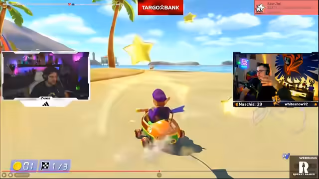 01:44:47Während des Rennens beobachtet und kommentiert der Streamer unfaire Taktiken anderer Spieler. Insbesondere wird kritisiert, wie oft Gegner mit roten Schalen, Bomben oder Blitz-Items attackiert werden, ohne dass dies als sportlicher Verhalten angesehen wird. Der Streamer reagiert enttäuscht auf den asozialen Spielstil der Konkurrenz, der den Spaß am Spiel trübt. Er berichtet, wie er selbst wiederholt Opfer solcher Attacken wurde, was als frustrierend und unfair empfunden wird.