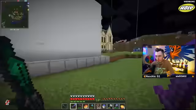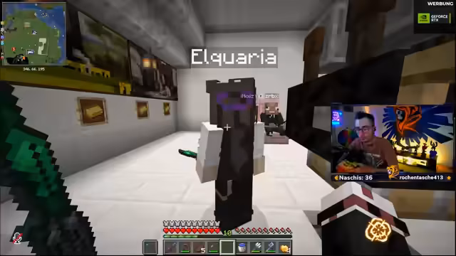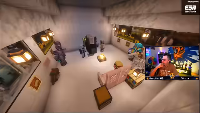 07:48:22Der Fokus wechselt zum Bau eines Kolosseums in FitnaCraft. Streamer baut nach einem Tutorial und ist unzufrieden mit dem Ergebnis, da es an der Seite sehr unansehnlich aussieht. Er plant, selbst Fenster einzufügen, ist aber frustriert, weil er das Gefühl hat, dass alles sowieso wieder gesprengt wird und der Bau daher keinen Zweck hat. Dies zeigt die Kombination aus Ehrgeiz und Gleichgültigkeit beim Bau.