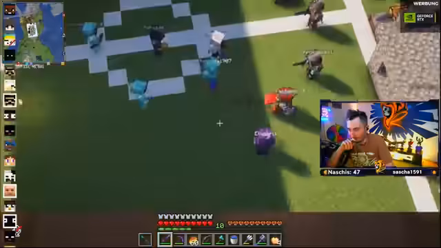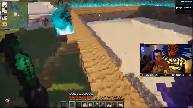08:57:06Der Streamer plant den Bau einer Arena für PvP-Kämpfe und möchte wissen, ob die Zuschauer daran teilnehmen möchten. Er erkundigt sich nach alternativen Baumaterialien wie Quarz oder Bruchtiefenschiefer, um das Holz im Spawnbereich zu ersetzen. Es finden sich mehrere Mitspieler, die ein spontanes 1v1 im Faustkampf arrangieren. Dabei bietet der Streamer an, an einem Laien PvP-Techniken zu lehren, und erklärt, dass bereits ein kurzes Training ausreiche, um sich auf dem Server behaupten zu können.
