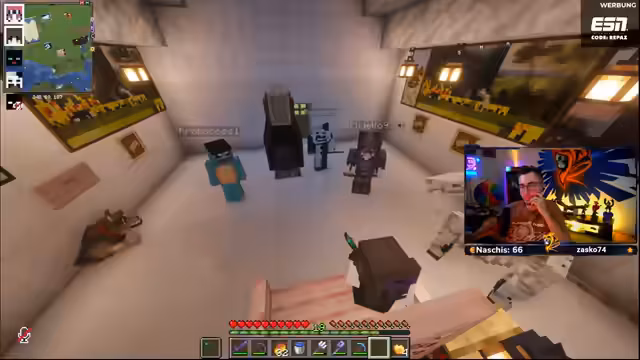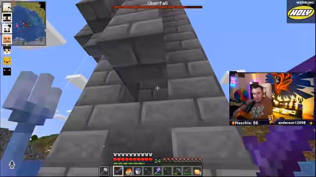 08:52:53Der Streamer berichtet von einer anspruchsvollen 24-stündigen Nether-Raid-Challenge mit Basti und anderen vor etwa zwei Jahren. Ziel war das Farmen eines Nether-Beacons, was beim ersten Versuch scheiterte, beim zweiten Mal jedoch erfolgreich war. Mehrere Teilnehmer wie Heiko, Basti und Farbo beteiligten sich intensiv, obwohl der Streamer selbst nur kurz Power-Status einnahm. Diese Herausforderung wird als anstrengend, aber extremes und lohnendes Spielerlebnis beschrieben.