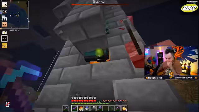 08:30:26Die Gruppe macht sich auf die Suche nach Netherite im Nether. Dabei werden verschiedene Strategien besprochen, wie z.B. das Suchen an Chunk-Grenzen, um die Spawn-Chancen zu erhöhen. Der Streamer teilt jedoch einen der größten 'Fails' in seiner Minecraft-Karriere: Er stattete seine Diamant-Rüstung fälschlicherweise mit Netherite anstelle des Upgrades auf Netherite-Rüstung aus, wodurch seine wertvolle Ausrüstung nur äußerlich geändert, aber nicht verbessert wurde. Das führte zu großer Frustration.