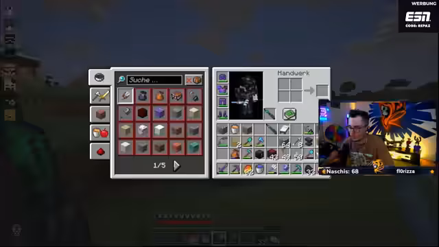 00:48:47Mit Norex und Ali vertieft repaz die Zusammenarbeit: Er erklärt Totem-Mechaniken, repariert Waffen und tauscht Ressourcen (Tridente, Ender-Chests). Gleichzeitig kritisiert er die deutsche Minecraft-Übersetzung (z. B. „Huschen“ für Swiftschnell), bevor er die Arena mit Wasser- und Movement-Tricks testet. Als Abschluss plant er PvP-Wetten und reflektiert über die Endphase von FitnaCraft, während er Game-Awards-News (eine mysteriöse Statue) diskutiert.