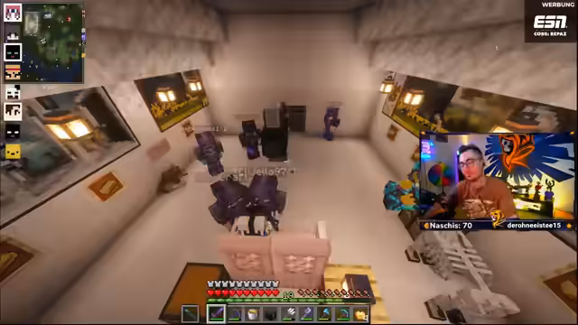 08:49:43Nach Stunden im Nether klagt der Streamer über physische Beschwerden wie Augenschmerzen und Migräne, ausgelöst durch die monotone rote Umgebung. Er lehnt mehrere Event-Einladungen ab – darunter ein Minecraft-Event – weil die Reisezeit (bis zu 7 Stunden pro Strecke) zu kurzfristig und unverhältnismäßig sei. Stattdessen priorisiert er Familienzeit und Reflexion über die psychischen Auswirkungen des langen Nether-Aufenthalts, verglichen mit früheren Texture-Pack-Lösungen gegen Überlastung.