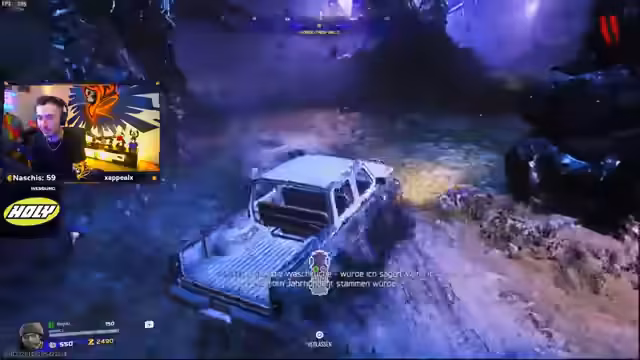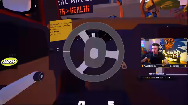 08:15:28Im Stream ereignet sich ein chaotisches Manöver mit einem Fahrzeug. Der Streamer stößt auf technische Probleme, da sein Bremspedal scheinbar nicht mehr funktioniert, was zu hektischen Fahrmanövern und Missverständnissen mit dem Co-Piloten führt. Es kommt wiederholt zu Desynchronisationsproblemen zwischen den Spielern, bei denen sich das Verhalten des Fahrzeugs und die Position von Gegenständen wie einem Knüppel oder Gebiss unterscheiden. Die Kommunikation ist geprägt von Stress und wiederholten Anweisungen, die aufgrund der unvorhersehbaren Fahrzeugreaktionen nicht immer befolgt werden können.