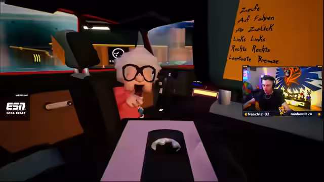 07:24:21Die Fahrt in Backseat Drivers entwickelt sich zu einem immer größeren Chaos. Der Streamer, am Steuer, hat Schwierigkeiten, das Fahrzeug zu kontrollieren, während Sam als Beifahrer versucht, Anweisungen zu geben. Die Kommunikation ist von Missverständnissen und Frustration geprägt, da der Fahrer immer wieder gegen Wände fährt oder in die falsche Richtung lenkt. Die Musik im Spiel wird als störend empfunden und mehrfach gewechselt. Plötzlich kommt es zu einem unerwarteten Rollenwechsel: Der Streamer findet sich auf dem Beifahrersitz wieder, während Sam das Steuer übernimmt. Diese neue Dynamik führt zu weiteren Verwirrungen, da beide Spieler sich an ihre neuen Rollen gewöhnen müssen. Die Schwierigkeiten beim Lenken und Navigieren bleiben bestehen, und die Spieler kämpfen weiterhin mit den Herausforderungen des Spiels, während sie versuchen, die Kontrolle über das Fahrzeug zu behalten und die Fahrt fortzusetzen.