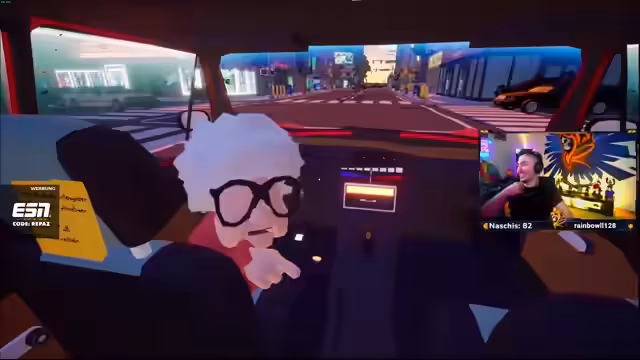06:55:28Nach einer kurzen Diskussion über die Gesundheit von Streamern und Schlafmangel, wechselt der Streamer zu einem neuen Spiel: Backseat Drivers. Gemeinsam mit einem Freund, Sam, wird das Spiel gestartet, das als Koop-Fahrspiel beschrieben wird. Die anfängliche Euphorie wird schnell von Verwirrung abgelöst, da die Steuerung und die Rollenverteilung – wer fährt und wer navigiert – unklar sind. Der Streamer übernimmt die Rolle des Fahrers, während Sam als Beifahrer navigieren soll. Die ersten Fahrversuche gestalten sich chaotisch, geprägt von Schwierigkeiten beim Lenken, Bremsen und dem Rückwärtsfahren. Die Sicht des Fahrers ist eingeschränkt, und die Kommunikation zwischen den Spielern ist von Missverständnissen geprägt. Technische Probleme mit der Ingame-Sprachausgabe und der Musik tragen zur allgemeinen Verwirrung bei. Die Spieler kämpfen mit der Steuerung des Fahrzeugs und versuchen, sich an die ungewöhnliche Spielmechanik zu gewöhnen, während sie gleichzeitig die Heizung und die Fenster bedienen müssen, um die Sicht zu verbessern.
