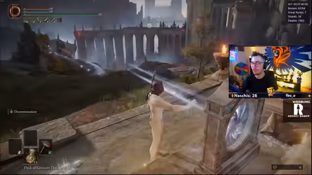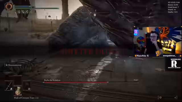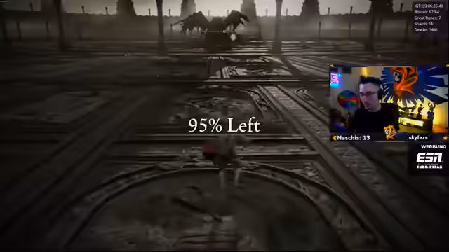 05:45:02Der Streamer beschreibt den Kampf mit Bale als extrem anstrengend und langwierig. Er vergleicht die Haltung des Bosses mit der von Malenia und nennt Prime of Radar eine Buzz-Booster-Version von ihr. Er erwähnt, dass die besten Spieler der Welt für diesen Boss bis zu 17 Stunden benötigt haben. Die anhaltende Konzentration und die Wiederholung der Angriffe führen bei ihm zu Erschöpfung und Bewegungsfehlern, was die hohen Todeszahlen erklärt.