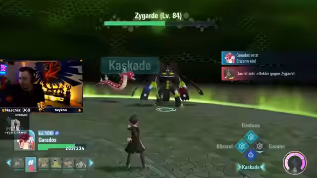 03:13:15Der Streamer bestreitet den letzten Bosskampf gegen Zygarde, den Hüter des Gleichgewichts. Zygarde erklärt, dass es ihn retten wollte, als er zu viel gab und dann zu viel nehmen wollte, und bittet ihn um einen Kampf, um zu sehen, was ihn als Trainer ausmacht. Der Kampf gegen Zygarde ist mehrphasig, wobei Zygarde bei der Hälfte seiner KP seine Optimum-Form annimmt. Nach einem herausfordernden Kampf besiegt der Streamer Zygarde und fängt es mit einem Mondball. Damit ist der Pokédex vervollständigt und die letzte Hauptmission abgeschlossen. Der Streamer erhält den Zygarde-Würfel, mit dem er zwischen den Formen von Zygarde wechseln kann. Zygarde kann in seiner Optimum-Form die Mega-Entwicklung vollziehen, wobei seine Attacke Sanktionskern zu Tilgungslicht wird. AZ reflektiert über seine 3000 Jahre Existenz und seine Suche nach einer besseren Welt, die er nun durch das Lehren der Selbsthilfe verwirklichen möchte.