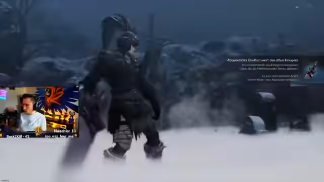 01:13:10Der Streamer kauft einen Steinschrättschlüssel und überlegt, welche Waffe er spielen soll. Er erinnert sich nicht mehr an die coolste Waffe aus der Beta. Er entdeckt eine neue Waffe an einem Monolithen, die Gläfe. Der Streamer testet die Gläfe und findet sie nicht gut. Er erinnert sich an eine vierte Waffe, die ihm besser gefallen hat. Er entdeckt neue Fähigkeiten und überlegt, ob er Parry durch Präzisionsausweichen ersetzen soll. Er analysiert die Ausrüstungsteile des Sets der gefrorenen Berges und stellt fest, dass Geist für die Speere benötigt wird. Er verbessert seine Fähigkeiten und testet die neuen Moves. Der Streamer erreicht einen Bosskampf und stellt fest, dass er diesen in der Beta im ersten Versuch besiegt hat. Er stirbt jedoch mehrmals gegen den Boss und analysiert dessen Angriffe. Er lernt, wie man den Kick des Bosses pariert und stellt fest, dass der Boss schwer ist, wenn man nicht pariert. Der Streamer besiegt den Boss schließlich und erhält eine Trophäe. Nach dem Bosskampf stellt der Streamer fest, dass er jetzt die Demo abgeschlossen hat. Er überlegt, ob es wirklich drei oder vier Waffen im Spiel gibt. Er bemerkt ein Zucken auf dem Bildschirm, das durch die schlecht eingestellte Todzone verursacht wird.