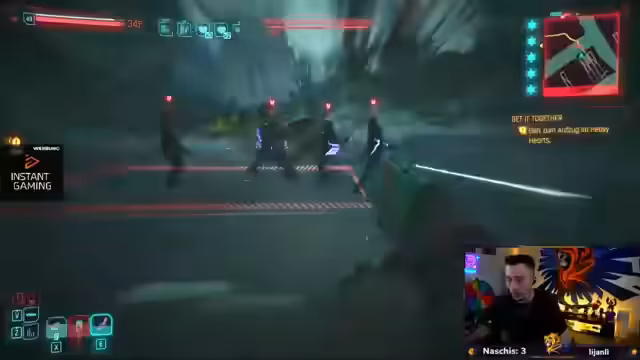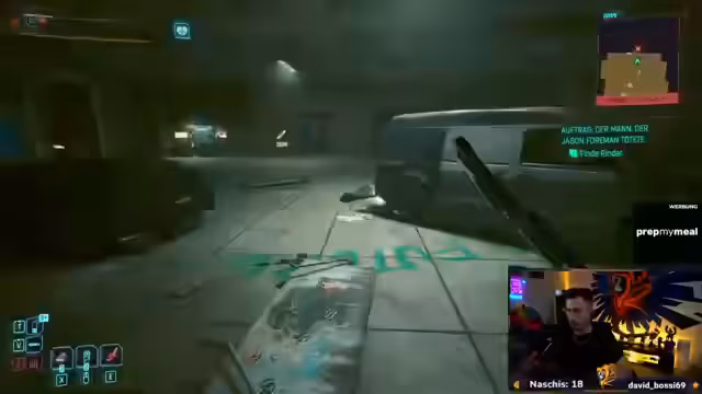 02:29:49Die Situation eskaliert, als Cyberpsychos auftauchen und die Spieler angreifen. Es kommt zu einem chaotischen Kampf, bei dem der Spieler Hanson und seine Bande bekämpft. Das Gameplay ist von technischen Problemen und Bugs geplagt, was den Kampf schwierig und frustrierend macht. Der Spieler überleht und schaltet die Gegner aus.