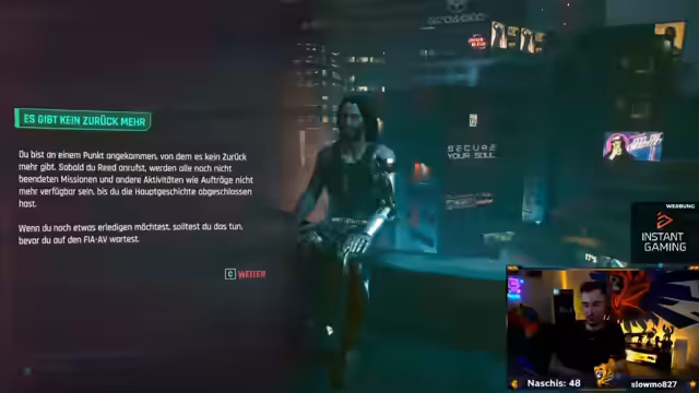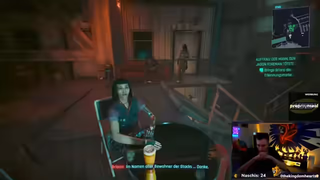 04:54:16Der Streamer beschreibt eine chaotische Mission, die tödlich endete. Er und seine Teammitter gerieten in Panik, als ein Dieb auftauchte. Obwohl sie versuchten, das gestohlene Gut sicherzustellen, löste sich das Zeug in einer schrecklichen Sequenz auf. Der Streamer berichtet von einem "Top Tier CyberPsycho"-Zustand und seiner Absicht, den Dieb zu eliminieren. Nachdem er den vermeintlichen Täter aufgespürt hatte, eskalierte die Situation, der Junkie starb durch eine Überdosis und anschließende Gewalttaten, was den Streamer und seine Partner zu Söldnern machte.