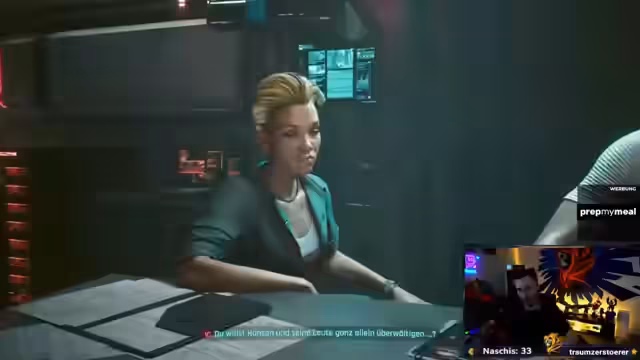 06:15:32Der Streamer trifft sich mit Kurt Hansen, um die Zugangscodes für den CineShow-Mainframe zu verhandeln. Die Atmosphäre ist gespannt und voller Misstrauen. Der Streamer muss eine Rolle spielen und sich in die Denkweise des Charakters Emmerich versetzen. Es kommt zu einem dramatischen Umschwung, als der Streamer Hansen mit dem Eisbrecher-Tool attackiert und so Songbird befreit. Die Situation eskaliert und führt zu einem finalen Showdown, bei dem der Streamer Hanson besiegt und wertvolle Beute erbeutet.