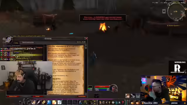 04:53:50Der Streamer erleidet einen tödlichen Unfall, der auf einen No-Check-Mob zurückzuführen ist, der ihn ohne Vorwarnung one-shotet. Dieser Moment wird als dramatisch und frustrierend beschrieben. Der Verlust des Charakters hat zur Folge, dass er die Führung der Gilde 'Ryrax HC Crew' abgeben muss. Er rekapituliert, wie oft er und seine Mitspieler gestorben sind, und vergleicht die Spielstile zwischen Allianz und Horde, wobei er einen Vorteil für die Allianz durch ein Leben rettendes Item sieht.