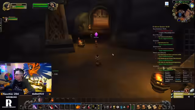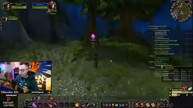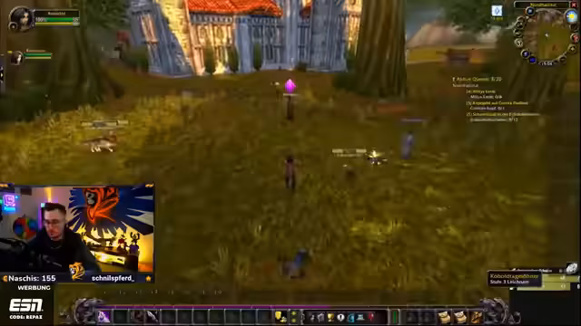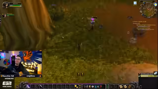 10:14:55Der Streamer befindet sich bereits zehn Stunden im World-of-Warcraft-Gameplay und reflektiert seine mögliche Spielsucht, die er erst am nächsten Tag beurteilen kann. Es folgt die abschließende Quests in der Westfall-Region, die sich langatmig gestaltet. Nach dem Abschluss der Quests begibt er sich mit einem anderen Spieler in den ersten Dungeon, die 'Höhle der Defias'. Er beschreibt die Quest 'Fallensteller der Defias', bei der es darum geht, 15 Gegner zu eliminieren, und macht sich zunächst auf den Weg dorthin.