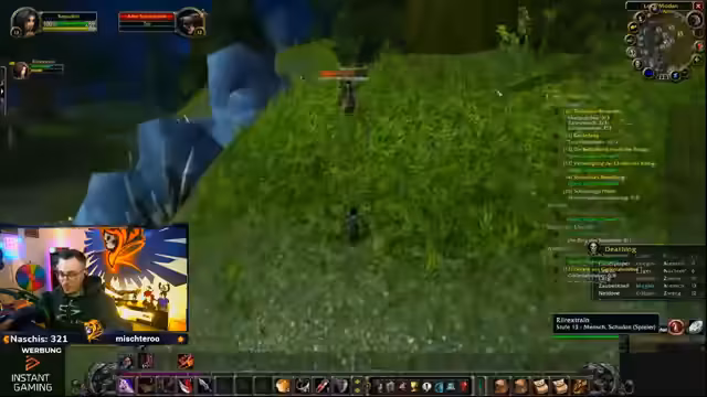 06:30:05Der Streamer findet eine Kiste, deren Inhalt, nach einem erfolglosen Kampf gegen den Elite-Mob, sofort von einem anderen Spieler mittels 'Ninja-Looting' gestohlen wird. Dies führt zu großer Verärgerung und einer Diskussion über die Unfairness im PvP-Bereich. Der Streamer trifft auf eine weitere Gruppe, die ebenfalls nach Beute sucht, und es kommt zu einem kurzen Scharmuzel, bevor man sich wieder trennt.