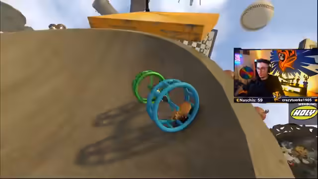 03:35:56Nach mehreren gescheiterten Versuchen gelingt es endlich, eine funktionierende Lobby in 'Hamsteria' zu starten. Jeder Spieler steuert einen Hamster in einem Wagen. Die Steuerung ist ungewöhnlich und erfordert beinahe simultaneous inputs: Nur der Spieler, der links fährt, darf die linke Lenktaste betätigen und umgekehrt. Dies führt zu erheblichen Koordinationsproblemen und vielen Abstürzen. Die Spieler müssen langsam antippen, um den Wagen unter Kontrolle zu halten, und werden von der Community, die den Stream verfolgt, mit Anfeuerungen und Kommentaren begleitet.