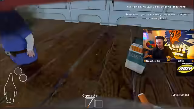 06:00:20Die Spieler bemühen sich, die Aufgaben im Spiel zu erfüllen, indem sie Kakerlaken mit einer Mäusefalle töten und Gegenstände stehlen. Sie interagieren weiterhin mit dem alten Mann, der sie konstant jagt und festhält. Ihre Aktionen sind oft unkoordiniert, was zu unvorhersehbaren Ergebnissen und häufigen Toden führt. Das Gameplay bleibt eine Mischung aus Kooperation und chaotischem Scheitern.