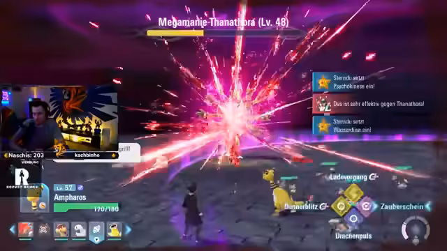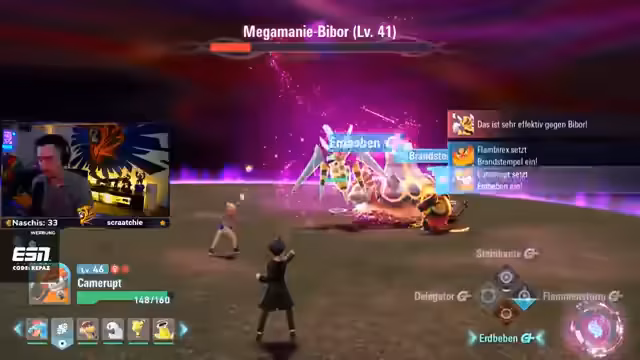 07:46:25Fünf neue Sidequests erscheinen, die oft normale Trainerkämpfe sind. Der Streamer trifft auf Elite Nebulag und möchte Armbandrus fangen. Ein Hololift funktioniert nicht, und der Streamer wird von einer Person angesprochen, die ihm helfen will, wenn er sie im Kampf besiegt. Nach dem Kampf heilt die Person die Pokémon des Streamers. Der Streamer bemerkt, dass Mega-Entwicklungen kommen und entdeckt ein "Scheidi-Humma". Er besiegt einen Gegner mit einem "Earthbeam one-shot". Der Streamer erhält den Ampharosnit, einen Stein für die Mega-Entwicklung von Ampharos. Er ist überrascht, dass Ampharos nicht den Typ Fee, sondern Drache/Elektro erhält. Er überlegt, welche Attacken er Ampharos beibringen soll, um die Mega-Entwicklung optimal zu nutzen. Ein Kampf gegen Brascolina steht an, der nur bei Regen stattfindet. Der Streamer wartet auf den Regen und beschließt, den Kampf nicht abzubrechen. Es regnet, und der Kampf beginnt. Eine Sidequest im Wohnblock führt den Streamer zu einem "Spuk", der sich als ein Pokémon entpuppt, das Strom vom Gebäude abzapft. Der Streamer fängt das Pokémon und erhält Belohnungen. Er entdeckt weitere Sidequests und kämpft gegen verschiedene Gegner, um Punkte und Geld zu sammeln. Eine weitere Sidequest führt ihn zu einem Friseursalon, wo er neue Frisuren für sein Pokémon freischaltet. Er entdeckt eine neue Mega-Entwicklung für Tantara und ist gespannt, wie sie aussieht. Im Kampf gegen das Mega-Pokémon setzt er eine Feuerattacke ein, die den Boden vergrößert. Der Kampf ist intensiv, und der Streamer muss strategisch vorgehen. Er erhält ein Challenge-Ticket und plant, weitere Mega-Manie-Pokémon zu besänftigen. Der Streamer bemerkt, dass das Spiel viele Sidequests bietet und die Mega-Entwicklungen visuell ansprechend sind. Er äußert seine Meinung zum Spiel und sagt, dass es "nicht so geil" ist.