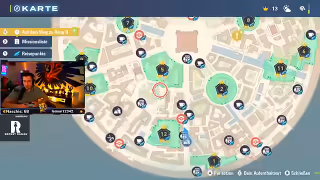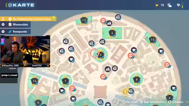 09:35:46Der Streamer erhält neue Aufträge, darunter die Aufgabe, 'Unruhestifter' in der Zone Cyan zur Rede zu stellen. Er fragt sich nach der Funktion des Schillerpins, einem Item, das die Chance auf Shiny-Pokémon um das Vierfache erhöhen soll. Diese Information wird ihm von einem Zuschauer gegeben. Ein weiterer Auftrag besteht darin, Mega-Kristalle in der Kanalisation zu zerstören, um Mega-Splitter zu sammeln. Er ist überrascht über die Anzahl der Side-Quests, die nach einem kurzen Aufenthalt im Hotel erschienen sind. Die Handlung deutet auf eine größere Verschwörung rund um die Quasar Corporation hin, die für das vermehrte Auftreten wilder Pokémon in der Stadt verantwortlich gemacht wird.
