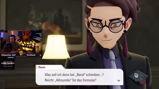 09:58:04Der Streamer wird von Ravan, einem Mitglied des Corozio-Clans, als 'Rehspatz' identifiziert und erhält den Auftrag, Unruhestifter in einem Gebäude zu beseitigen. Diese Unruhestifter entpuppen sich als Gengars und ein Nebulak, die leicht besiegt werden können. Ravan erklärt, dass der Corozio-Clan den Bürgern hilft und dass er die Arbeit des Protagonisten überprüft. Es wird enthüllt, dass Ravan eine Vergangenheit mit dem Verschwinden wilder Pokémon in der Stadt hat und dass er selbst als Kind kein Zuhause hatte. Er beschließt, sich selbst um das Gengar zu kümmern, anstatt es zu verjagen.