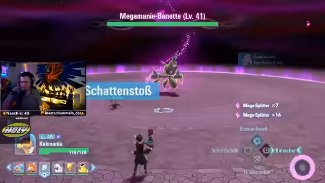 07:04:30Der Kampf geht weiter, und der Streamer hat Probleme, zu heilen, da ein Pokémon durch "Stachler" gestorben ist. Es wird erwähnt, dass die Möglichkeit, im Stream zurückzuspulen, eine neue Funktion für Abonnenten ist. Ein knapper Kampf wird gewonnen, und der Streamer erhält Hyperbälle zurück. Es wird nach einem Pokémon mit einem speziellen Wesen gesucht, das Spezialangriff hoch und Angriff runter hat. Die "Mäßig-Minze" wird erwähnt, die der Streamer nicht besitzt. Die Anzahl der Sidequests wird als "krank" beschrieben, da nach jeder Hauptquest gefühlt drei neue Sidequests erscheinen. Ein Kampf gegen einen Gegner, der "Schutzschild" einsetzt, wird bestritten, und der Streamer gewinnt. Nach Abschluss der Sidequests ist die Karte "clean", und die Hauptquest führt zu "Rashes Zimmer". Es kommt zu einem Konflikt mit dem Corozio-Clan, bei dem der Streamer in einen Kampf verwickelt wird. Ein Gegner mit "Stachler und Tarnsteine" im Bart wird besiegt, und der Streamer entdeckt eine neue Mega-Entwicklung für Patsaeron, die als "geil" und "schön" beschrieben wird. Das Shiny Passaeron wird erwähnt, das silberfarben ist, passend zum normalen Passaeron.