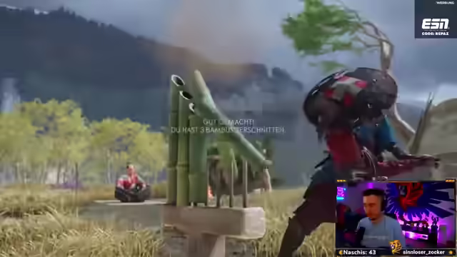 01:43:23Es wird beschlossen, die Main Quest fortzusetzen und den Oni zu erledigen. Allerdings wird diese Entscheidung kurzzeitig unterbrochen, da eine Waffenverbesserung verfügbar ist. Es wird ein neuer Move für den Speer erlernt, ein Dreieck-Kreis-Move. Der Streamer äußert Bedauern, dass die Sidequests noch offen sind, aber die Verbesserung des Yari hat Priorität. Der Weg zum Sensei Takahashi wird beschrieben, der sich mit einem Schüler beim Kaki-Baum befindet. Dort soll der Kaki-Baum mit dem Speer angegriffen werden, um eine neue Technik zu erlernen. Es wird sich über die Früchte des Kaki-Baums gewundert und die Aussage getroffen, dass kein Mensch Kakis hasst. Es wird eine neue Technik namens Donner der Welle erlernt, die ein Geist verbraucht.