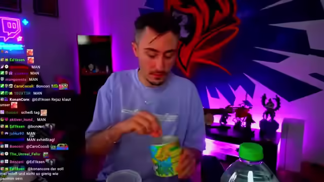 04:22:10Es wird das aktuelle Outfit im Spiel begutachtet und als bisheriges Highlight hervorgehoben. Anschließend folgt ein Geschmackstest einer neuen Holy Energy Sorte mit Limettengeschmack. Es wird bemerkt, dass Limette eigentlich nicht so zusagt, aber die Energie griffbereit war. Währenddessen wird sich überlegt, wie man das Getränk am besten mit einem Löffel aus der Dose bekommt, was zu einigen improvisierten Lösungen führt, inklusive der Nutzung des Controller-Deckels. Es wird gescherzt, dass der Controller nun kaputt sei. Der Geschmack des Getränks wird als trinkbar, aber nicht als Favorit bewertet. Abschließend wird überlegt, TikToks aus den Stream-Clips zu erstellen und die dafür notwendigen Rechte zu überprüfen.
