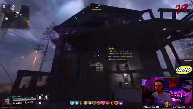 05:59:19Der Streamer äußert Schmerzen und wechselt zu einem Panzerraum. Nachladen erzeugt eine Explosion, die Schaden verursacht. Die aktuelle Waffe wird als schwach empfunden, obwohl sie blau ist. In Runde 20 wird die Waffenbox inspiziert, um den Schaden zu verbessern. Der Verlust aller Perks wird festgestellt und ein vorzeitiger Exfil in Erwägung gezogen, da bereits vieles gesehen wurde, außer dem Exfil selbst. Der Sound der Waffe wird als knackig gelobt. Es wird über Dark Ops Herausforderungen diskutiert, die im Main Game verfügbar sein könnten, darunter 1000 Kills. Der Streamer gibt zu, dass er nur ein bisschen spielen darf und dass Runde 50 eine coole Herausforderung wäre. Es wird überlegt, ob man Sonic Racing spielen soll und was Dalu macht.