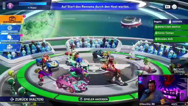08:57:17Es wird festgestellt, dass die Sonic Racing Lobby bereits bereit ist und die Teilnahme bevorsteht. Es wird bedauert, dass keine bekannten Spieler in der Lobby sind, was Vergleiche erschwert. Es wird sich über die fehlerhafte Anzeige von Racer und Cruiser in der Lobby-Beschreibung geärgert. Es wird die Vorfreude auf das Spiel durch den Banger Soundtrack ausgedrückt. Es wird die Frage aufgeworfen, welche Karre die anderen Spieler fahren und versucht, diese zusammen zu craften. Es werden Royal Chariot und Dark Reaper als Teile identifiziert und gekauft. Es wird überlegt, ob die Reifen eine Rolle spielen und versucht, die Reifen der anderen Spieler zu identifizieren. Es wird festgestellt, dass es als Charakter Steve gibt. Es wird die ungewohnte Situation thematisiert, mit einer unbekannten Karre ein Rennen zu fahren.