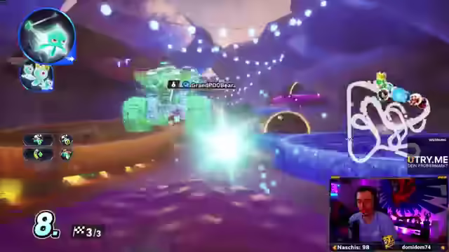 09:27:03Das Turnier beginnt mit 16 Matches. Der Streamer erwartet Schwierigkeiten in den ersten Runden aufgrund einer neuen, auf Geschwindigkeit ausgerichteten Karre. Er beschreibt das Gameplay als chaotisch und unfair, da er trotz guter Fahrweise und Schildnutzung schlecht platziert wird. Er kritisiert das Spiel dafür, dass es versweatet und unberechenbar ist. Der Streamer äußert Frustration darüber, dass er trotz kaum getroffen worden zu sein, als "Neuter" eingestuft wird und dass andere Spieler mit roten Blinkzeichen die gleiche Geschwindigkeit beibehalten. Er beschwert sich über einen Spieler, der ihn ständig mit "Hey Leute!" anspricht. Es wird über die Sinnlosigkeit von Strategie und Können im Spiel diskutiert, da die Platzierung oft zufällig erscheint und von Items abhängt.