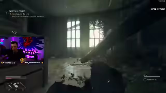 00:56:32Es wird ein Borderlands Placement für den nächsten Tag angekündigt. Der Streamer erwähnt einen Wetter-Bug, der dazu führt, dass sich die Tageszeit im Spiel nicht ändert. Nach einem Neustart des Spiels ist es Nacht, was den Bug bestätigt. Der Streamer versucht, eine Stealth-Mission zu absolvieren, wird aber entdeckt. Es folgt eine Trinkpause, und der Streamer stellt Medkits her. Er erinnert sich daran, die Mission bereits in einer Review gesehen zu haben. Die Grafikeinstellungen werden nach dem Neustart des Spiels nicht korrekt übernommen. Der Streamer scheitert an einem Stealth-Ansatz und muss sich den Gegnern direkt stellen.