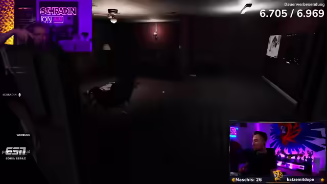 08:52:53Der Streamer äußert seinen Frust über ein Rätsel, das ihn aggressiv macht und zu Beleidigungen verleitet. Er erklärt, dass bestimmte Reihen des Rätsels nicht mehr berührt werden dürfen, sobald sie fertig sind. Trotzdem ist er skeptisch und verweist auf eigene Unwissenheit. Er berichtet von früheren Schwierigkeiten mit ähnlichen Rätseln, die ihn viel Zeit kosteten. Der Chat macht die Situation nicht besser, da viele Zuschauer es besser zu wissen scheinen. Schließlich wird das Rätsel gelöst, was Erleichterung auslöst, aber neue Probleme mit sich bringt: Null Sanity und ein aggressiver Geist. Es folgt eine Phase des Tankens und der Flucht vor dem Geist, wobei der Streamer feststellt, dass der Geist seinem Zwillingsbruder ähnelt. Ein neuer Schlüssel wird gefunden und es wird überlegt, wie man den Raum erreicht, in dem der Geist starb. Der Streamer erklärt die bevorstehende Aufgabe: Ein Raum mit einem One-Way, Fallen und einem sich ständig ändernden Muster muss durchquert werden, um Klebeband und Sicherungen zu finden und den Geist mit einem Skalpell zu töten. Der Streamer bietet seine Hilfe an, da er eine Komplettlösung hat, und schlägt vor, dass die Zuschauer die Aufgabe als Duo bewältigen.