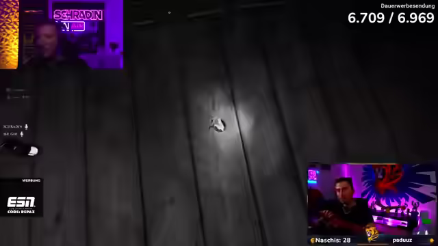 08:59:56Es wird die Idee eines IRL-Events in einem Lost Place diskutiert, bei dem die Teilnehmer mit Bodycams ausgestattet Mutproben absolvieren müssen. Der Streamer schlägt vor, Schauspieler zu engagieren, die die Teilnehmer erschrecken sollen. Er stellt sich vor, wie er selbst in dieser Situation reagieren würde und äußert seine Angst. Der Chat ist begeistert von der Idee und fordert die Umsetzung. Der Streamer knüpft seine Teilnahme jedoch an die Bedingung, dass ein anderer Teilnehmer vorher ein bestimmtes Horrorspiel durchspielt. Er malt sich aus, wie die Teilnehmer von verkleideten Personen in dem Lost Place verfolgt werden und wie ihre Pulsuhren ihren Angstpegel messen. Der Streamer gibt bekannt, dass er die Uhrzeit für das bevorstehende Ereignis benötigt und dass es um 3 Uhr stattfinden wird. Er warnt vor den Gefahren des Raumes und erklärt, dass ein falscher Schritt den sofortigen Tod bedeutet. Der Chat ist aufgeregt und möchte das Event unbedingt sehen. Es kommt zu Problemen und der Stream muss abgebrochen werden.