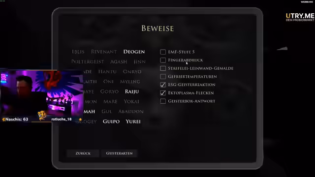 06:54:54Nach dem Hauptspiel wechselt der Streamer zu 'Demonologist' für einen kooperativen Horror-Stream. Zusammen mit einem Mitspieler erkunden sie die Ophelia-Bray-Map. Die Atmosphäre ist extrem angespannt, und der Streamer reagiert nervös auf Jump-Scares. Das Ziel ist es, den Geist zu finden, zu fotografieren und schließlich durch einen Exorzismus zu bannen, was jedoch nach anfänglichen Schwierigkeiten gelingt.