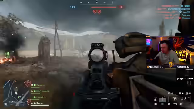 01:07:26Der Streamer gibt eine fundierte Kritik am Game-Design von Battlefield 2042. Er moniert, dass die Waffen, insbesondere die Sturmgewehre, durch zu viel Blumen (Recoil) unspielbar sind, was zu einer starken Disbalance führt. Er hält das Spiel dennoch für das beste Battlefield der letzten Jahre. Weiterhin kritisiert er den "verblödeten" Spielstil der Gegner, die nur im Campen scheinen, und führt fortwährend hitzige Auseinandersetzungen mit der Community über Spielstil und Können.