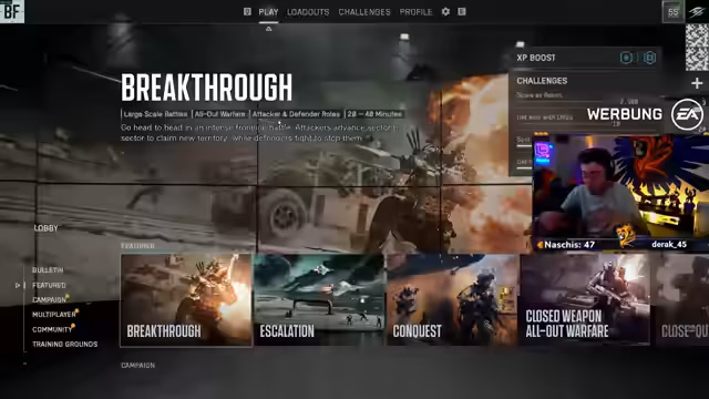 00:27:36Der Streamer äußert starke Kritik an den Sturmgewehren im aktuellen Battlefield-Spiel, da diese seiner Meinung nach verbuggt sind und unverhältnismäßig viel Streuung (Blumen) aufweisen. Er hat dies mehrfach beobachtet und gelesen und empfindet es als frustrierend, dass MPs auf Distanz schneller und effizienter töten als Sturmgewehre. Er rät davon ab, Sturmgewehre zu spielen, bis diese gepatcht werden. Stattdessen bevorzugt er die SGX, die er als die beste Waffe im Spiel bezeichnet. Er erwähnt auch die SL9 als eine weitere vielversprechende MP, die kaum Rückstoß hat und als „Beamer“ beschrieben wird. Der Streamer spielt hauptsächlich den „Breakthrough“-Modus, den er als den besten Modus mit viel Action und klaren Zielen empfindet, während er andere Modi und Maps kritisiert, besonders wenn er in der Defensive spielen muss.