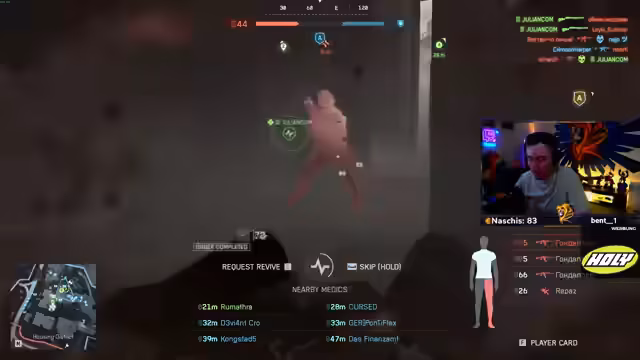 01:41:50Der Streamer analysiert eine besonders intensive Runde im Detail. Er zeigt strategisches Denken, indem er einen Panzer auf dem Punkt A ignoriert, um auf Punkt B zu konzentrieren, und seine Squad überzählt. Eine besondere Erklärung widmet er dem Thema Wiederauferstehung (Revive) für Medic-Spieler. Er erklärt den riesigen Unterschied zwischen einem schnellen "Half-Revive" und einem voll aufgeladenen "Full-Revive", der den geretteten Spieler mit vollem Leben zurückbringt und im Kampf einen erheblichen Vorteil verschaffen kann.