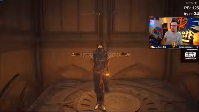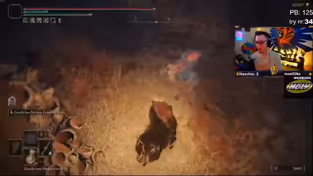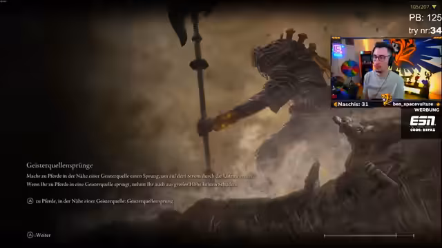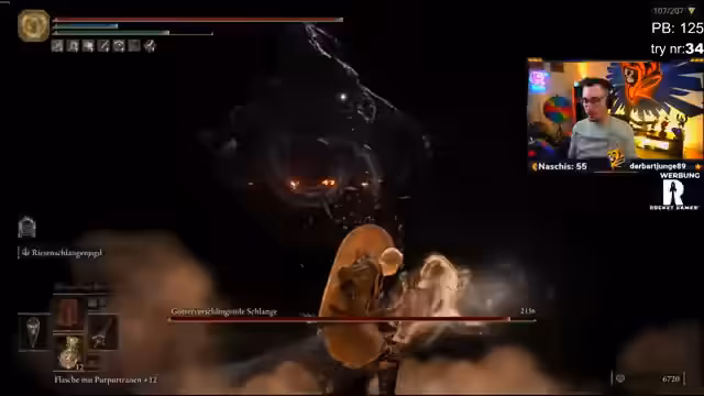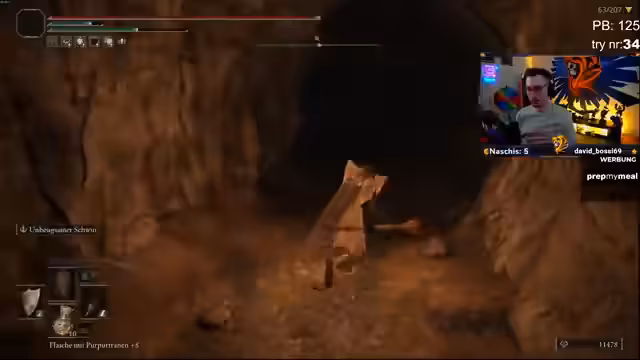 03:02:01Der Streamer kämpft mit einem Boss, dessen Haltung nicht bricht, und hat Schwierigkeiten mit der aktuellen Waffe bei der Jagd nach Goldener Saat. Er diskutiert die Talisman-Herausforderungen und muss drei Talismanslots nutzen, um einen schädlichen Talisman loszuwerden. Er hat Angst vor Godfrey und anderen boshaften Gegnern.