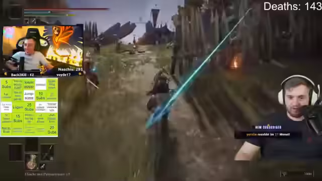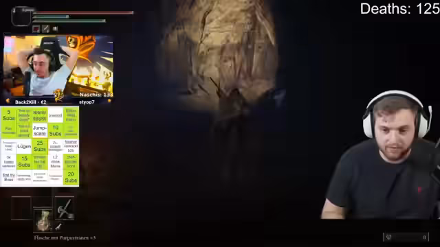 02:56:48Der Streamer bedankt sich weiterhin für die Prime Subs und liest die Namen der Geber vor. Er sagt, dass er super glücklich ist. Er bedankt sich für die Subs und findet es crazy. Er sagt, dass er in acht Jahren Streaming noch nie so viele Prime-Subs bekommen hat, als er danach gefragt hat. Er ist überwältigt von der Anzahl der Prime Subs. Er freut sich, dass die Zuschauer da sind. Er hat seine Runen zurück. Er riecht potenziell einen Crash aus. Er findet, dass der Zuschauer einen richtig geilen ersten Run macht. Er nimmt etwas als 1. auf. Er fragt, ob er seine Rüstung verbessern kann und antwortet, dass er sich erst bessere suchen muss. Er fragt, ob schwerster Gegner schon selber hinaus ist und bejaht dies. Er erhält ein Bingo. Er will nicht zu einem bestimmten Ort und denkt, dass es ein Boss ist. Er will zum Baum und findet es einen Krampf, dorthin zu kommen. Er bedankt sich für den Support und erhält einen Prime Star. Er findet, dass der Baum in einer anderen Farbe leuchtet. Er hat ihm leider nicht zugehört.