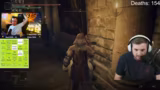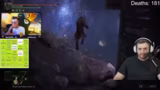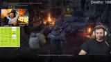 04:05:20Max wird vom Karianischen Ritter auseinandergenommen, da er ohne Tränke und Mana in den Kampf geht und seine Attacken nicht parrieren kann. Der Streamer kritisiert, dass es bei einem Kampf ohne Mana für ihn kein echter Kampf ist. Trotz mehrerer Versuche scheitert Max, woraufhin der Streamer ihn anfeuert und darauf hinweist, dass der Boss sehr stark ist.