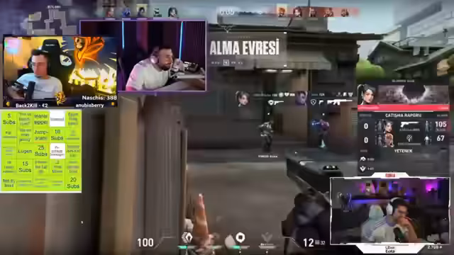 13:26:23Der Streamer diskutiert zunächst über das Camp-Placement von Merz und äußert sich überrascht über die Wanderung in zwei TP's. Anschließend wird Seth Rogens Leistung mit einer Sniper hervorgehoben, wobei seine Fähigkeit, Gegner auszuschalten, betont wird. Es wird auch über die Stärke von Kubas Team auf dem Papier gesprochen und dem Seth Rogen Team der Turniersieg gegönnt. Der Streamer äußert sich besorgt über einen Brief und sucht nach einer roten Markierung auf der Karte, um einen genauen Ort zu finden, wobei er eine geheime Wand entdeckt. Es wird die Frage aufgeworfen, wie nah die Spieler an ihren Monitoren sitzen und wie sie dabei etwas sehen können, insbesondere im Hinblick auf das Fadenkreuz und die Minimap. Die Pros scheinen immer komplett im Monitor drin zu sein, was Verwunderung auslöst. Der Streamer kommentiert die Spannung des Finales und die Möglichkeit eines Comebacks, wobei er die Schwierigkeit der Defense auf Split hervorhebt. Er analysiert Spielzüge und Taktiken, einschließlich des Einsatzes von Traps und Ults, und lobt gelungene Aktionen.