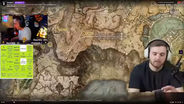 04:56:32Der Streamer äußert sich zunächst verwundert über einen Stream-Titel und dessen Gestaltung. Anschließend wechselt er das Thema und schlüpft in die Rolle der 'L-Ring-Polizei', die über Erlaubtes und Unerlaubtes im Spiel wacht, relativiert dies aber schnell wieder. Er kommentiert das Spielverhalten anderer Spieler, insbesondere Chef Strobel, dem er von einer bestimmten Aktion abgeraten hatte. Es folgen Überlegungen zur Ausdauer und der Suche nach einem 'geilen Ausgang' aus einem Schloss. Der Streamer fragt sich, ob er bereits den dritten Main-Boss besiegt hat und ob das Schloss nun abgeschlossen ist, obwohl er schätzt, nur die Hälfte erkundet zu haben. Er berichtet von seiner Reise in eine neue Welt und kommentiert die Nachricht eines Zuschauers namens Reapers bezüglich Schleifsteinen, die er als Lüge darstellt, da er trotz intensiven Lootens keinen Schleifstein Level 3 gefunden hat. Der Streamer plant, die Karte weiter zu erkunden, nachdem er feststellt, dass ein Baum 'sehr mager' war, während eine Höhle 'überkrass' war. Er liest eine Nachricht von Reapers und stellt fest, dass er viele Bereiche in Raya Lucaria übersehen hat, darunter einen Fahrstuhl und einen seitlichen Stepper. Er entdeckt eine Fledermausfrau, die auf Latein singt, und erwähnt, dass er im Elden Ring Wiki nach der Übersetzung suchen könnte. Er kritisiert, dass er das Schleifmesser und die goldene Saat verpasst hat. Er markiert einen Boss auf der Karte und erwähnt, dass später ein Invade stattfinden wird, wenn man mit jemandem bestimmten redet. Er entdeckt einen coolen Teil der Map und betritt eine Katakombe. Der Streamer kommentiert die kleinen Kobold-Schweine-Mistviecher und bemerkt, dass sich eine Tür geöffnet hat, was er auf unsichtbare Wände zurückführt. Er entdeckt Loot, das er zuvor übersehen hatte, und wundert sich, wie das passieren konnte. Der Chat spammt, und er erkennt, dass es sich um eine Druckplatte handelt. Er findet sich in einem verrückten Labyrinth wieder, in dem sich Türen zufällig öffnen und schließen. Er vermutet, dass die Kisten dafür verantwortlich sind. Er entdeckt eine Falle mit Pfeilen, die aus den Wänden schießen, und findet einen Schmiedestein Level 3.