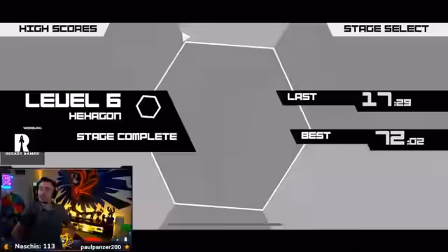03:45:17Der Streamer beginnt mit der Vorführung eines Handyspiels namens Hexagon, bei dem ein Dreieck durch Wände navigiert werden muss. Er erklärt die Steuerung und zeigt ein Level, das er seit seiner Schulzeit spielt. Die Zuschauer werden eingeladen, zuzusehen, und es entstehen Diskussionen über den Schwierigkeitsgrad des Spiels.
